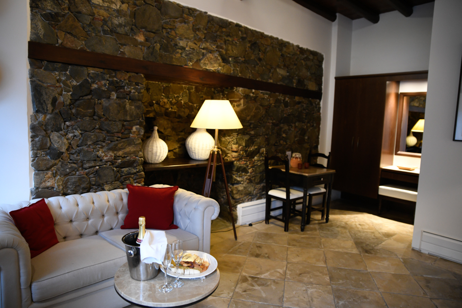 Gorgeous rooms with a sitting room, beautiful beds, and all modern comforts ideal for romantic getaways! The bathrooms are my favorite – with glass walls overlooking the picturesque village, fireplace and private indoor jacuzzi. Gorgeous!
