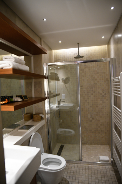Firstly, let’s talk about these impossibly perfect rooms that are huge in size, luxe, and fabulous! The beds are amazing, there is also a dining area, living room, private veranda, and a huge bathroom with a jacuzzi and a separate shower. Oinou Strata is an adults-only hotel, and perfectly designed for romantic next-level stays.