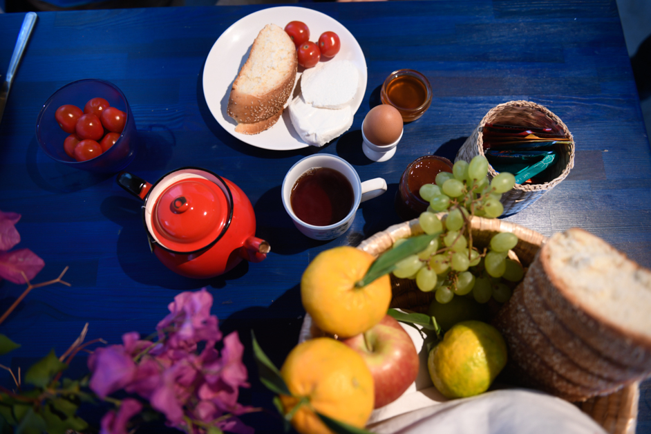 The breakfast is breakfast in bed, and a huge spread of goodies will be waiting for you in your fridge inside the room daily! You will find individually wrapped containers with fresh orange juice, milk, bread, butter and jam, cheese, and other cold cuts! Additionally, yogurt with muesli, a Nespresso machine, toaster, and kettle. Perfection!