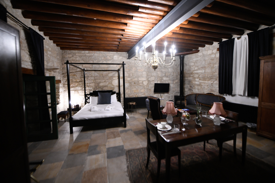 At Aristotelio Hotel, you will find luxurious accommodation, a warm welcoming, and absolutely incredible cuisine! The rooms at Aristotelio are practically perfect as they combine tradition with a modern and lavish edge! You will not want to leave your spacious room, with its own fireplace, impeccable interior design, and a balcony overlooking the green surroundings and mountain views.