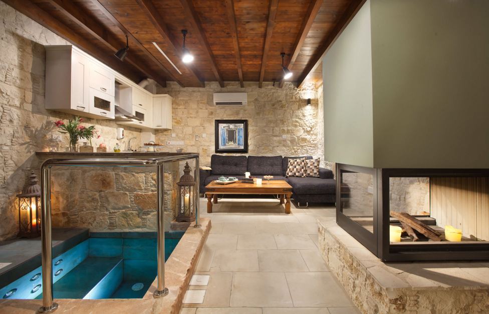 Simply…wow! If you book one place in Lofou, let it be this one! Oinoessa is a complex of two luxurious stone-built houses, consisted of six deluxe studio apartments that surround a private courtyard. Here, you will find luxury, peace, and tranquillity: it is the perfect getaway from the stresses of modern life. Each suite is different – and again the details make them stand out!